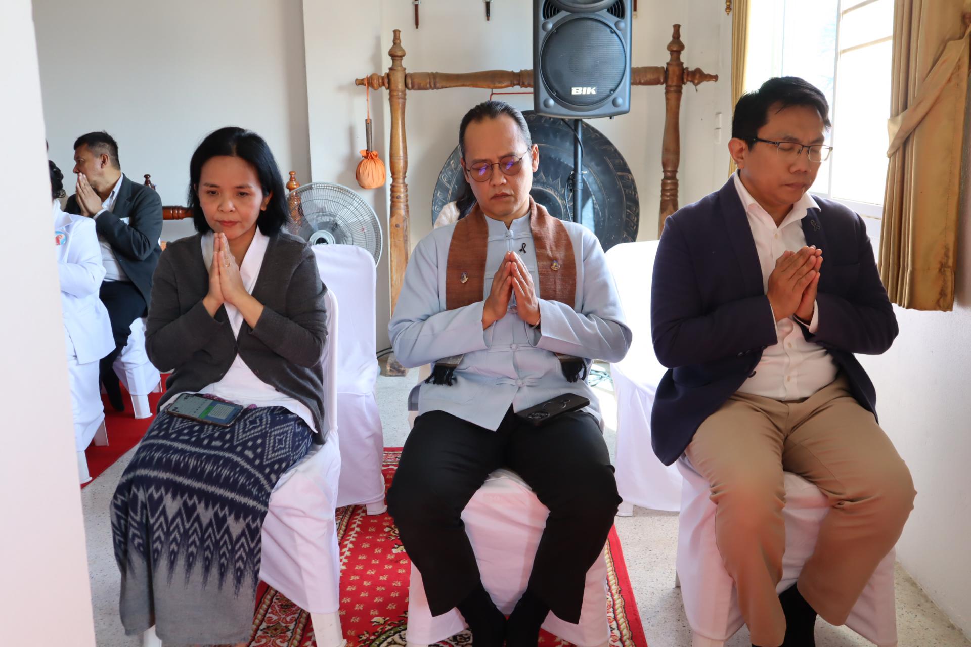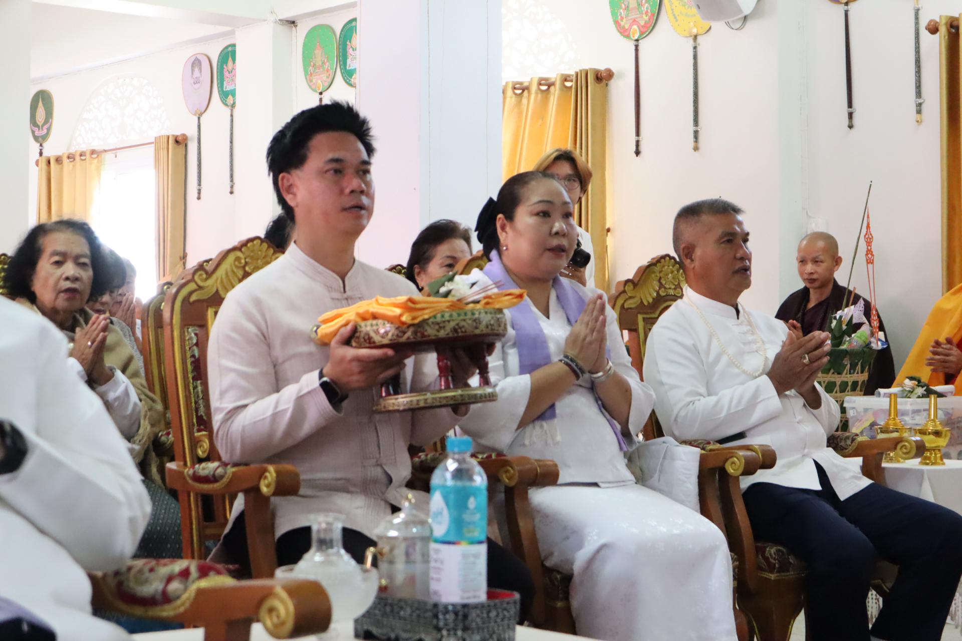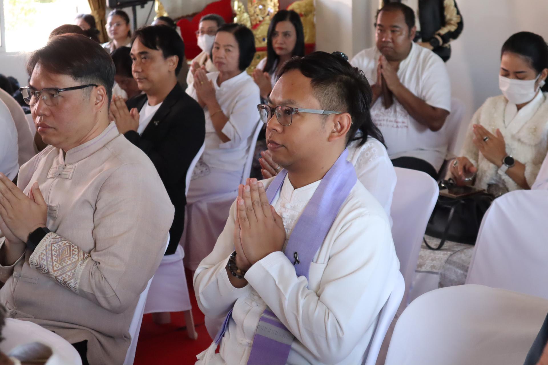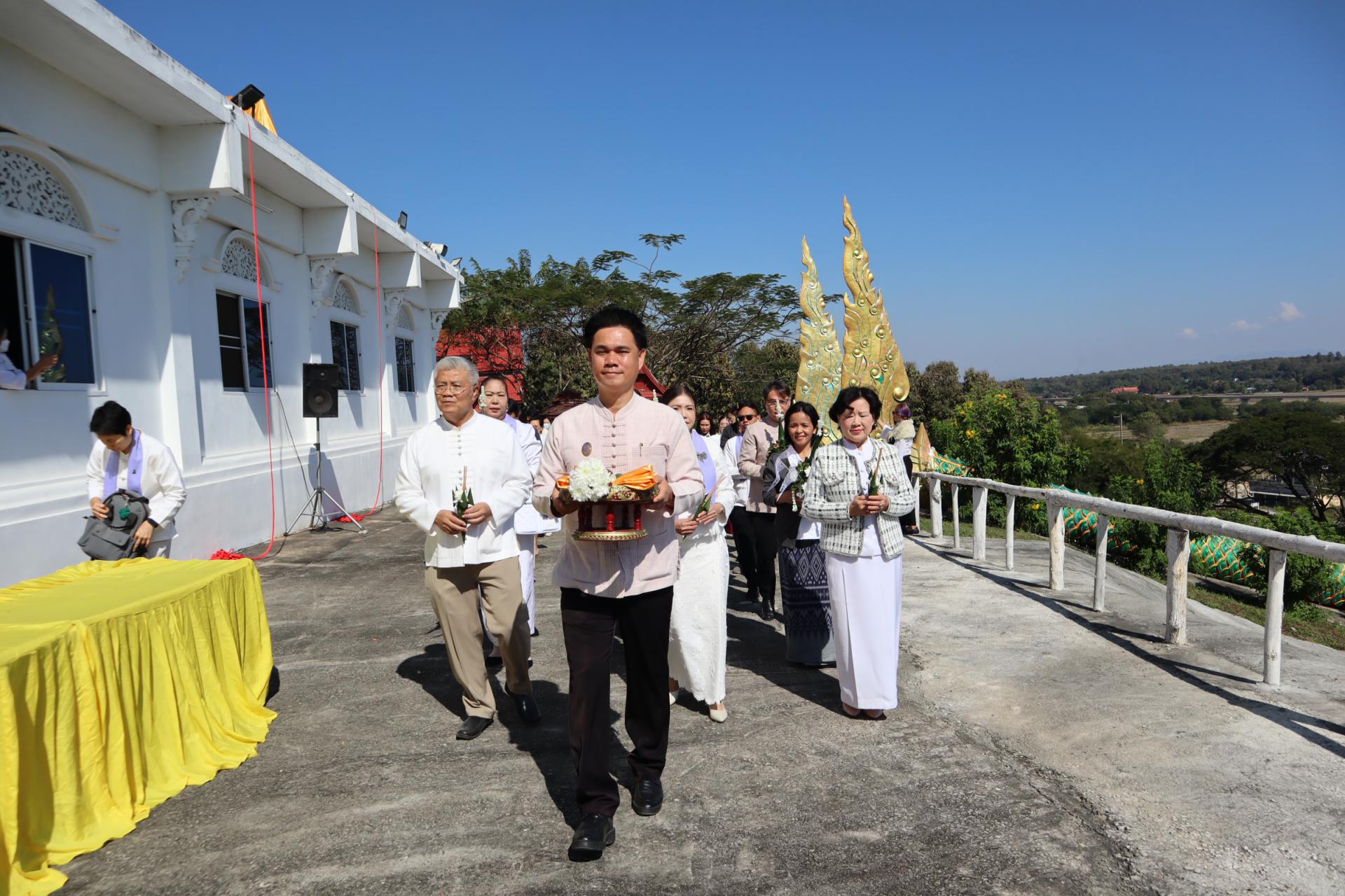 โดยรองอธิการบดีฝ่ายคุณภาพนิสิต ดร.วุฒิชัย ไชยรินคำ จุดธูปเทียนพระรัตนตรัย กล่าวคำถวายผ้าห่มพระเจ้า พร้อมถวายเครื่องไทยทานและปัจจัยแด่พระสงฆ์ ถวายเครื่องสักการะแบบล้านนาแด่พระมุนีศรีวิสุทธิคุณ (พระนอน วัดดงพระเจ้า) และนำคณะผู้บริหาร บุคลากร นิสิต ผู้ร่วมงานวางสวยดอกไม้เพื่อสักการะบูชาพระมุนีศรีวิสุทธิคุณ ประเพณีถวายผ้าห่มพระเจ้า ตามคติความเชื่อของชาวล้านนาเชื่อว่า พระเจ้า หรือ พระพุทธรูป คือตัวแทนของพระพุทธเจ้าเมื่อเข้าถึงฤดูหนาวจึงมีการทำผ้าห่มกันหนาวให้กับองค์พระ และเชื่อว่าอานิสงส์ของการถวายผ้าห่มพระเจ้าจะทำให้ชีวิตเจริญรุ่งเรือง ไม่ตกทุกข์ได้ยาก อันตรายไม่กร้ำกราย เหมือนมีเกราะป้องกันสิ่งไม่ดีต่างๆ ไม่ให้มาสู่ผู้ถวายผ้าห่มพระเจ้า