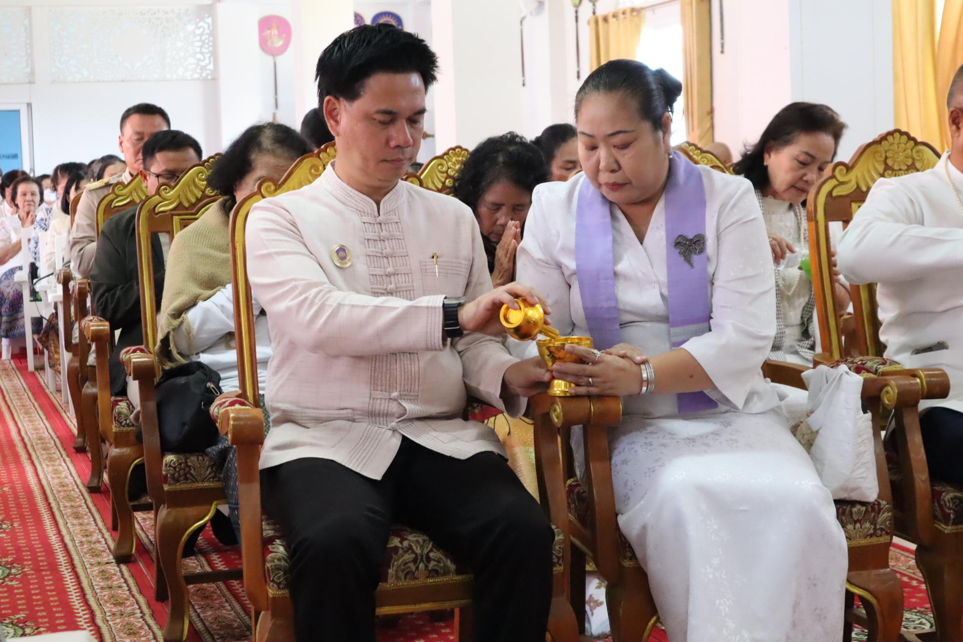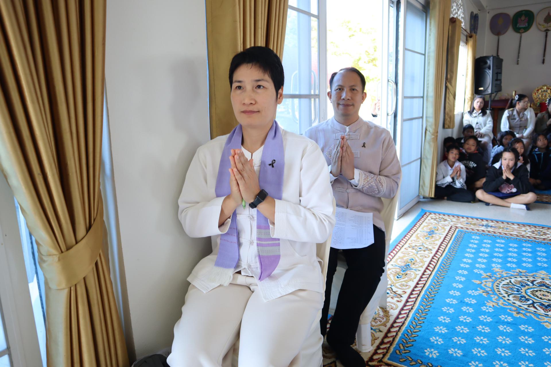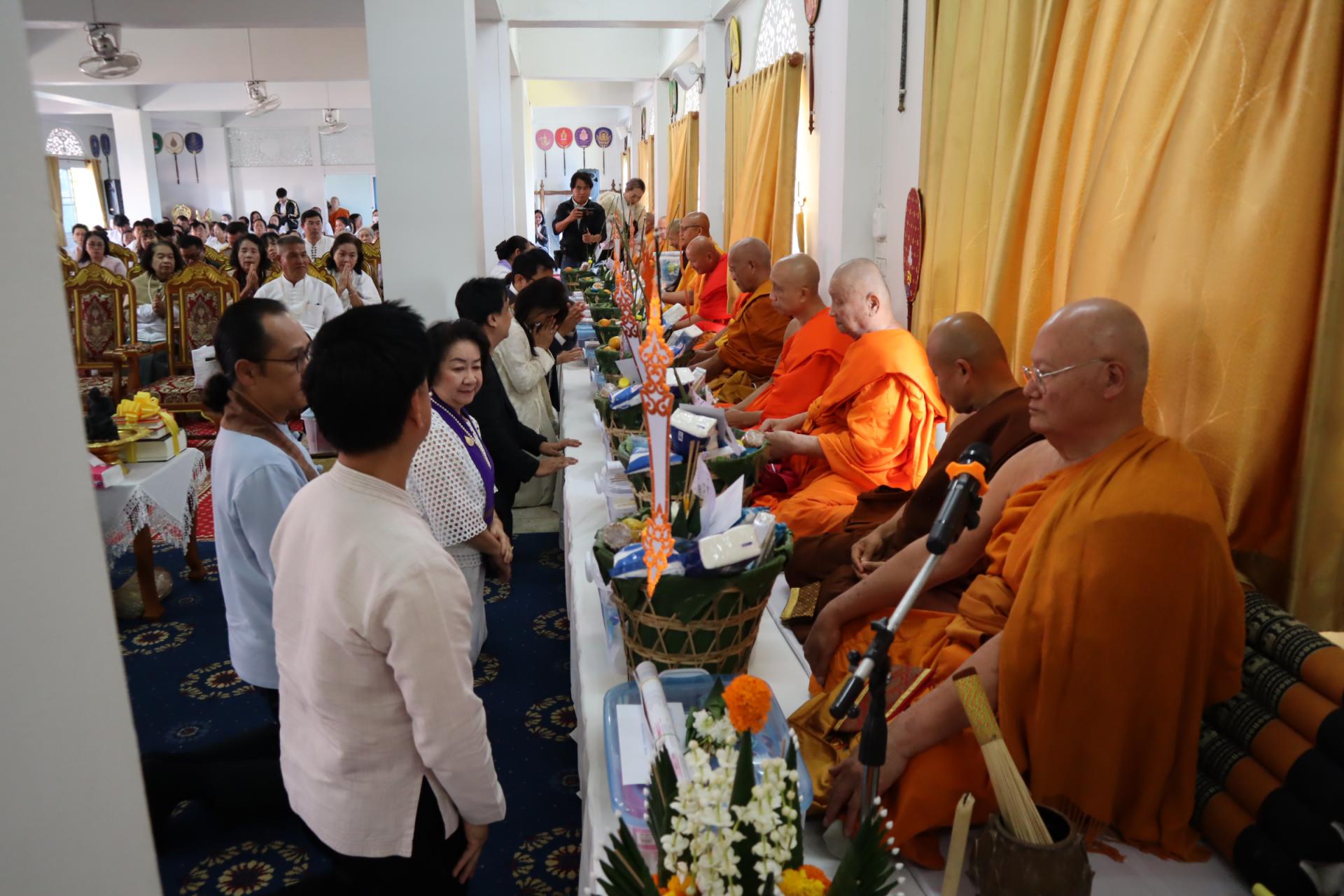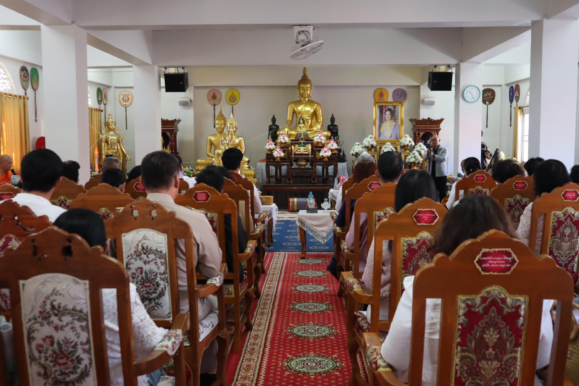 โดยรองอธิการบดีฝ่ายคุณภาพนิสิต ดร.วุฒิชัย ไชยรินคำ จุดธูปเทียนพระรัตนตรัย กล่าวคำถวายผ้าห่มพระเจ้า พร้อมถวายเครื่องไทยทานและปัจจัยแด่พระสงฆ์ ถวายเครื่องสักการะแบบล้านนาแด่พระมุนีศรีวิสุทธิคุณ (พระนอน วัดดงพระเจ้า) และนำคณะผู้บริหาร บุคลากร นิสิต ผู้ร่วมงานวางสวยดอกไม้เพื่อสักการะบูชาพระมุนีศรีวิสุทธิคุณ ประเพณีถวายผ้าห่มพระเจ้า ตามคติความเชื่อของชาวล้านนาเชื่อว่า พระเจ้า หรือ พระพุทธรูป คือตัวแทนของพระพุทธเจ้าเมื่อเข้าถึงฤดูหนาวจึงมีการทำผ้าห่มกันหนาวให้กับองค์พระ และเชื่อว่าอานิสงส์ของการถวายผ้าห่มพระเจ้าจะทำให้ชีวิตเจริญรุ่งเรือง ไม่ตกทุกข์ได้ยาก อันตรายไม่กร้ำกราย เหมือนมีเกราะป้องกันสิ่งไม่ดีต่างๆ ไม่ให้มาสู่ผู้ถวายผ้าห่มพระเจ้า