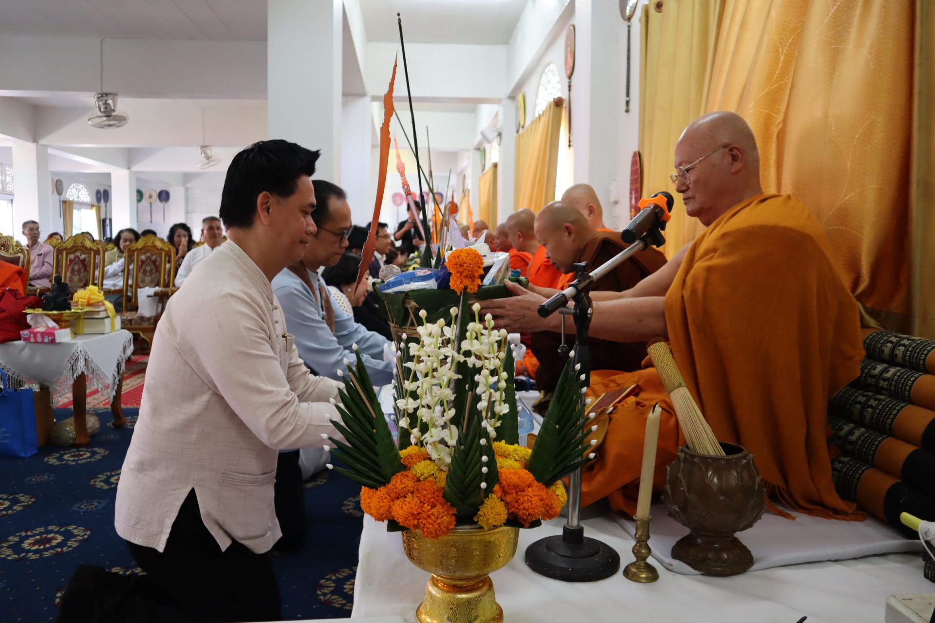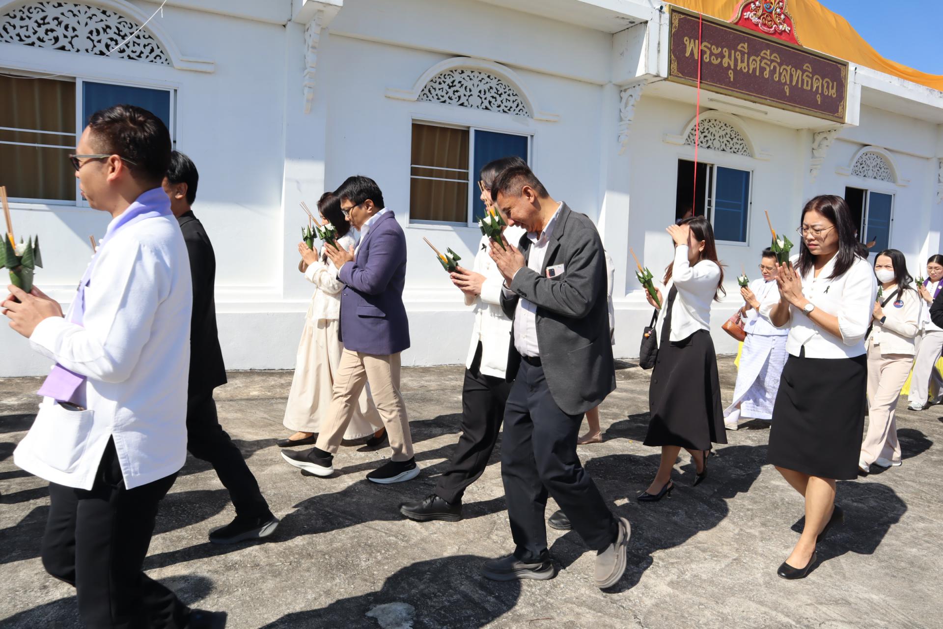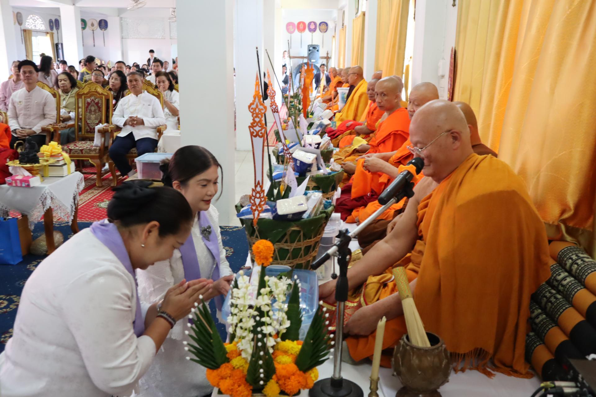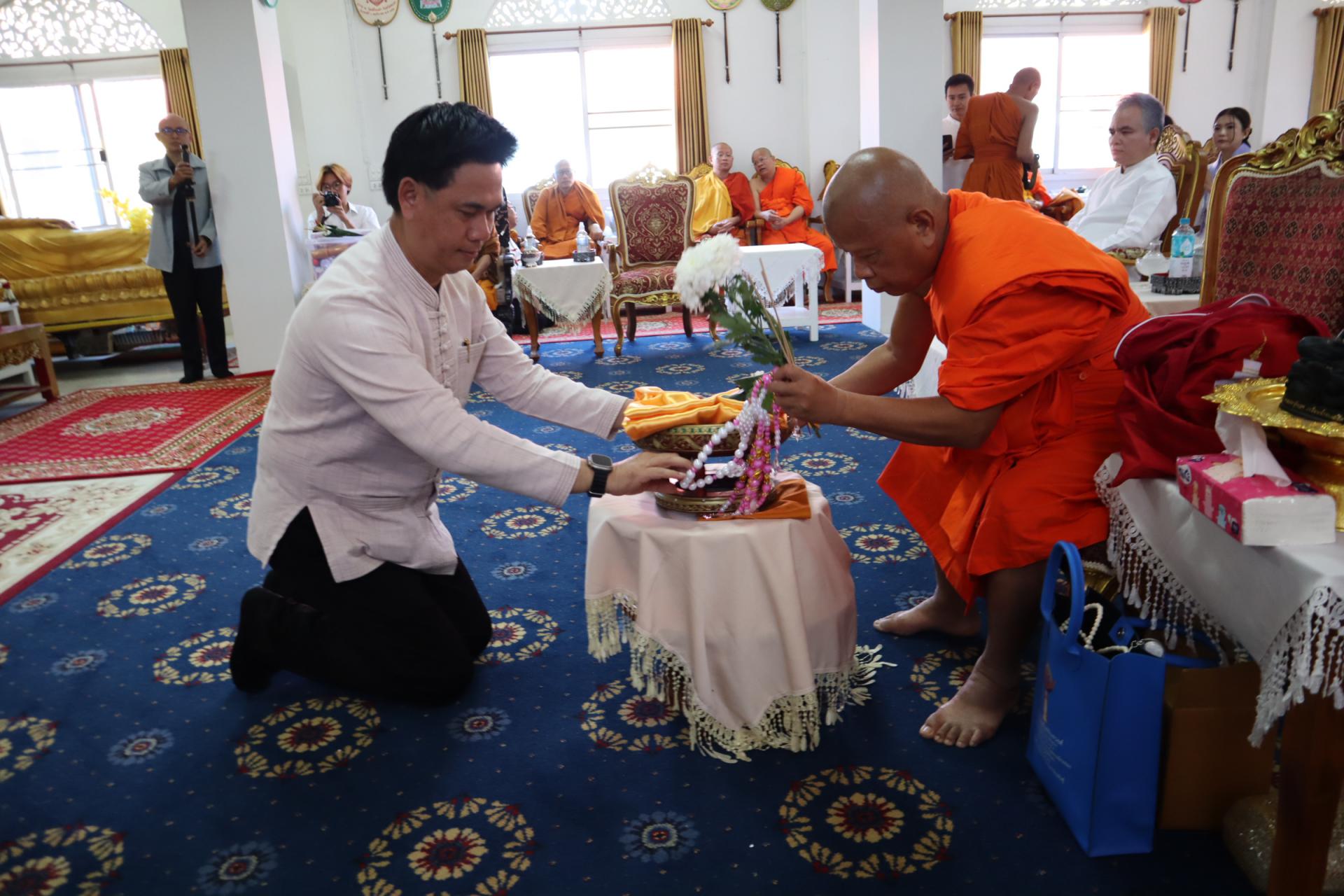 โดยรองอธิการบดีฝ่ายคุณภาพนิสิต ดร.วุฒิชัย ไชยรินคำ จุดธูปเทียนพระรัตนตรัย กล่าวคำถวายผ้าห่มพระเจ้า พร้อมถวายเครื่องไทยทานและปัจจัยแด่พระสงฆ์ ถวายเครื่องสักการะแบบล้านนาแด่พระมุนีศรีวิสุทธิคุณ (พระนอน วัดดงพระเจ้า) และนำคณะผู้บริหาร บุคลากร นิสิต ผู้ร่วมงานวางสวยดอกไม้เพื่อสักการะบูชาพระมุนีศรีวิสุทธิคุณ ประเพณีถวายผ้าห่มพระเจ้า ตามคติความเชื่อของชาวล้านนาเชื่อว่า พระเจ้า หรือ พระพุทธรูป คือตัวแทนของพระพุทธเจ้าเมื่อเข้าถึงฤดูหนาวจึงมีการทำผ้าห่มกันหนาวให้กับองค์พระ และเชื่อว่าอานิสงส์ของการถวายผ้าห่มพระเจ้าจะทำให้ชีวิตเจริญรุ่งเรือง ไม่ตกทุกข์ได้ยาก อันตรายไม่กร้ำกราย เหมือนมีเกราะป้องกันสิ่งไม่ดีต่างๆ ไม่ให้มาสู่ผู้ถวายผ้าห่มพระเจ้า