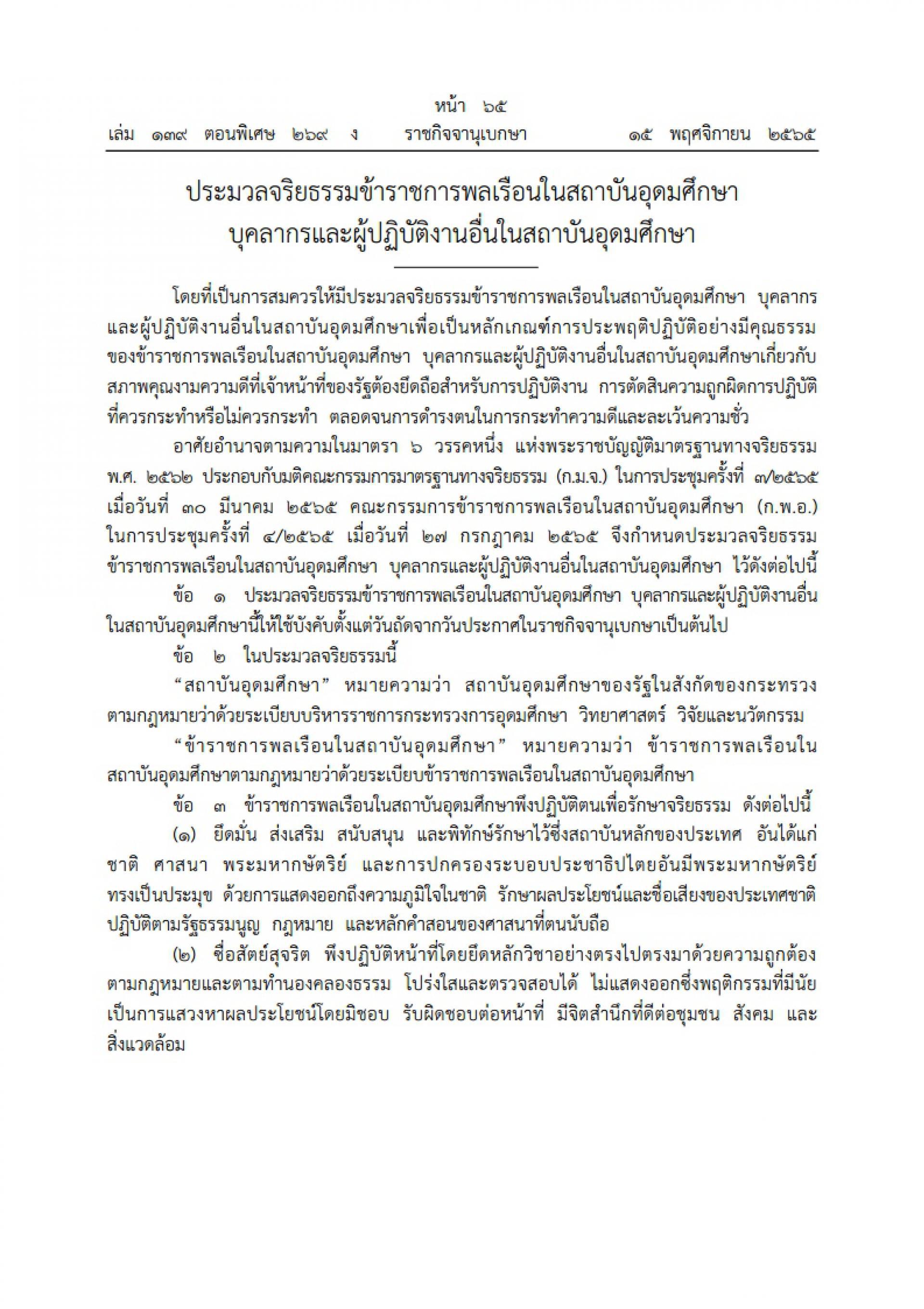 ประมวลจริยธรรมข้าราชการพลเรือนในสถาบันอุดมศึกษา บุคลากรและผู้ปฏิบัติงานอื่นในสถาบันอุดมศึกษา